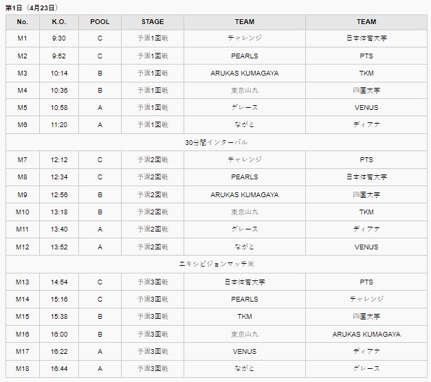 4/24(日)DAY2の試合時間については、4/23(土)DAY1の試合結果次第で決定します。