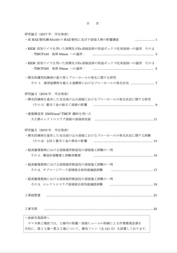 当社は、鉄骨製品の品質向上と技術開発を目的に、下記の活動を主とした研究開発も行っております。