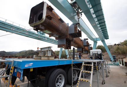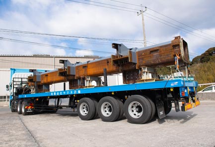 都心の工場では難しい製品の大量ストックも広大な敷地を活用した屋外ストックヤードであれば可能です。こうした製品の輸送に威力を発揮するのがトラック部隊です。全国でもめずらしい鉄骨ファブリケーター専用の輸送部隊として、より確実でスピーディな輸送を可能にしました。
